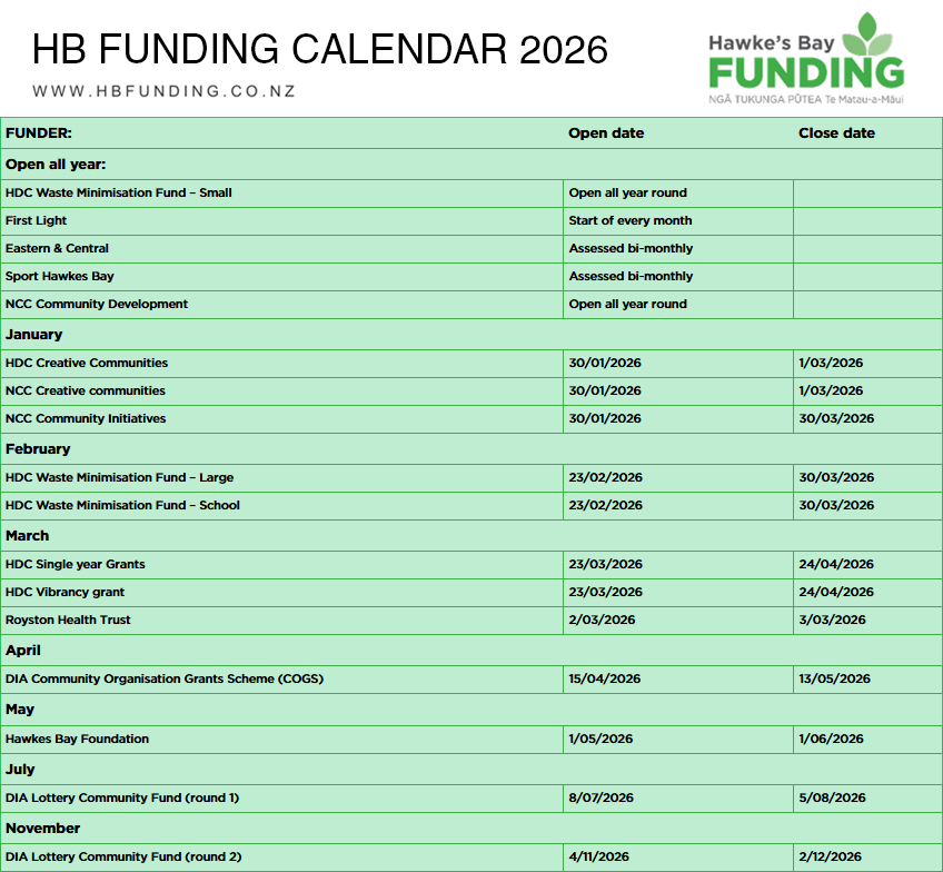 For more information on funding available to Hawke's Bay based charities, please visit https://www.hbfunding.co.nz/